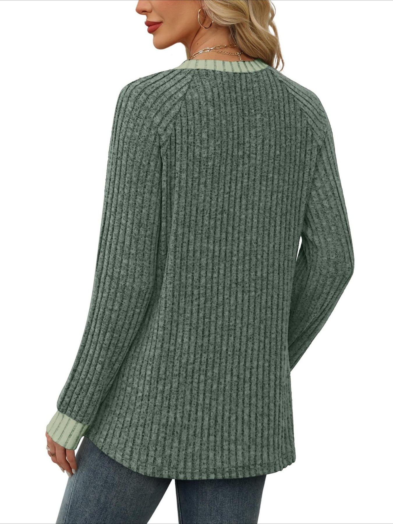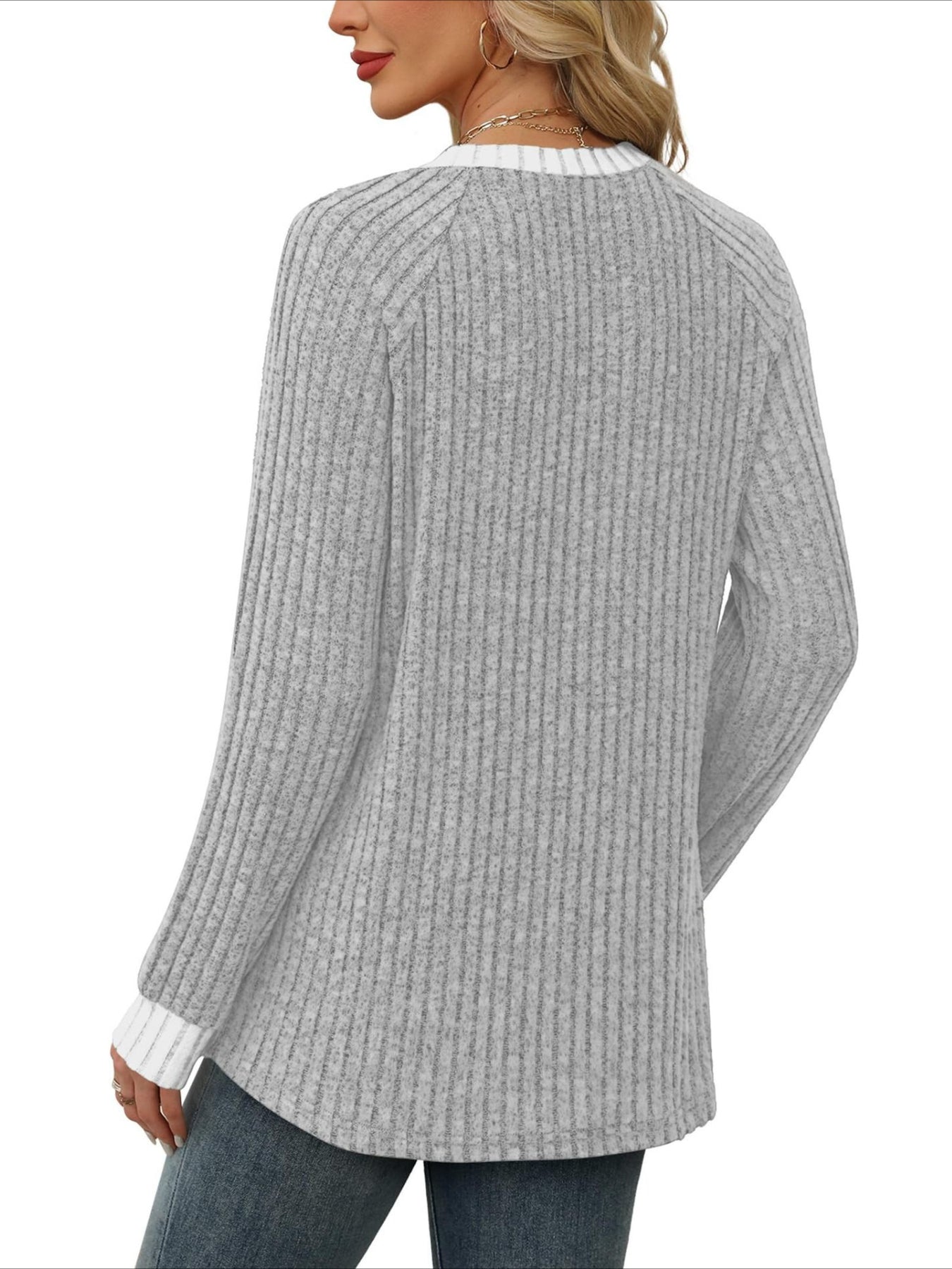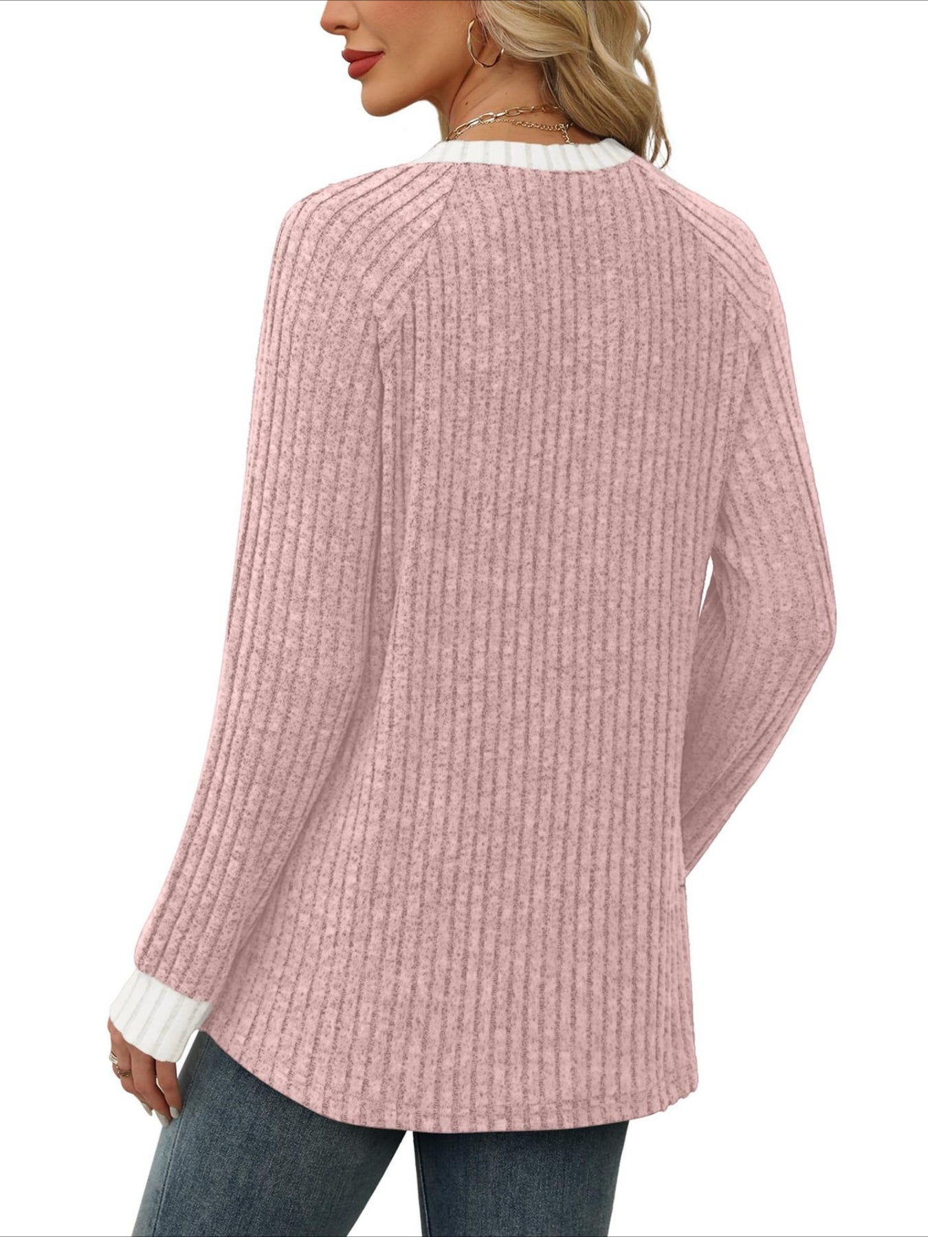 Add a touch of sweetness to your daily wardrobe with our solid V-neck long sleeve...