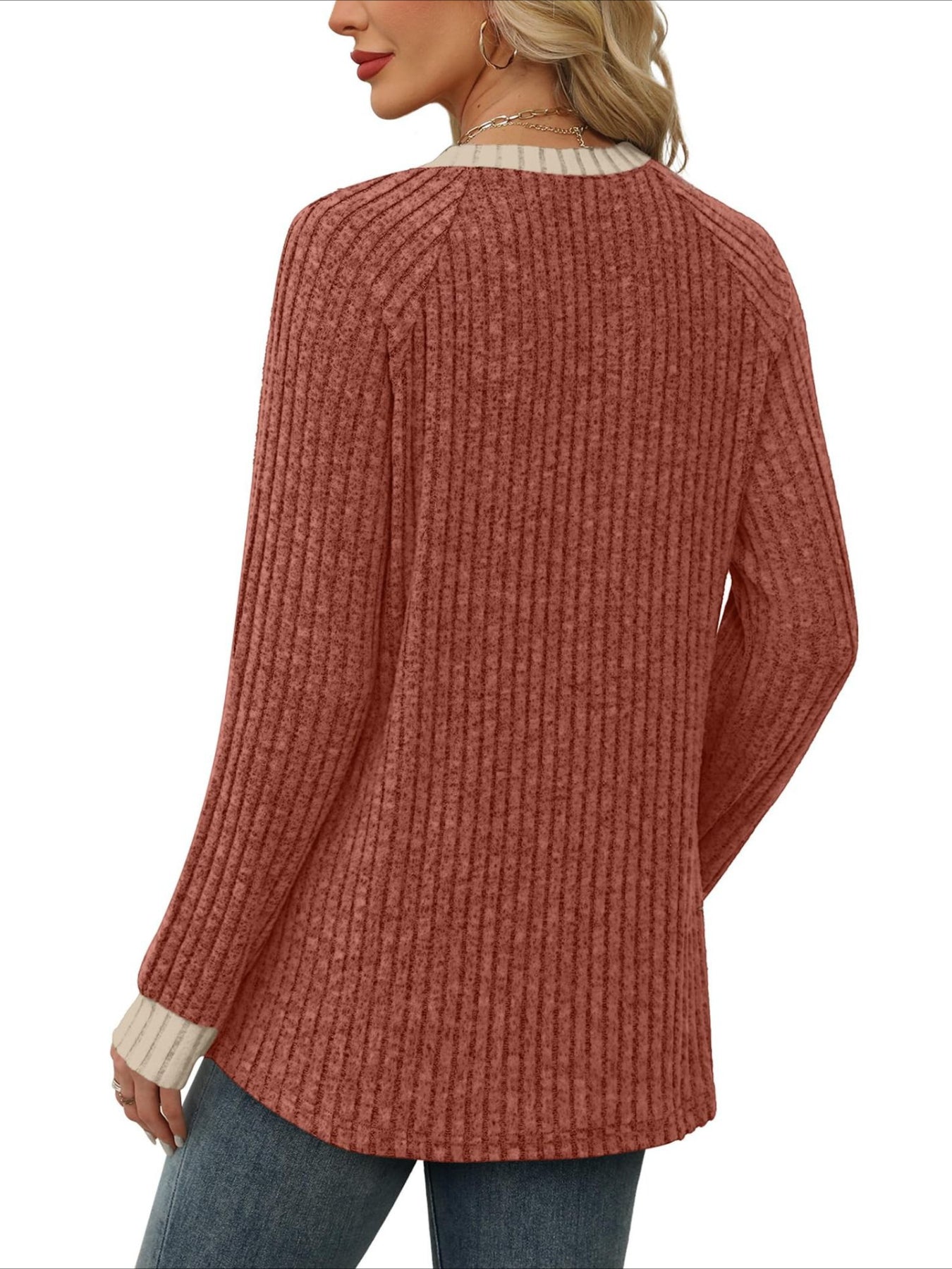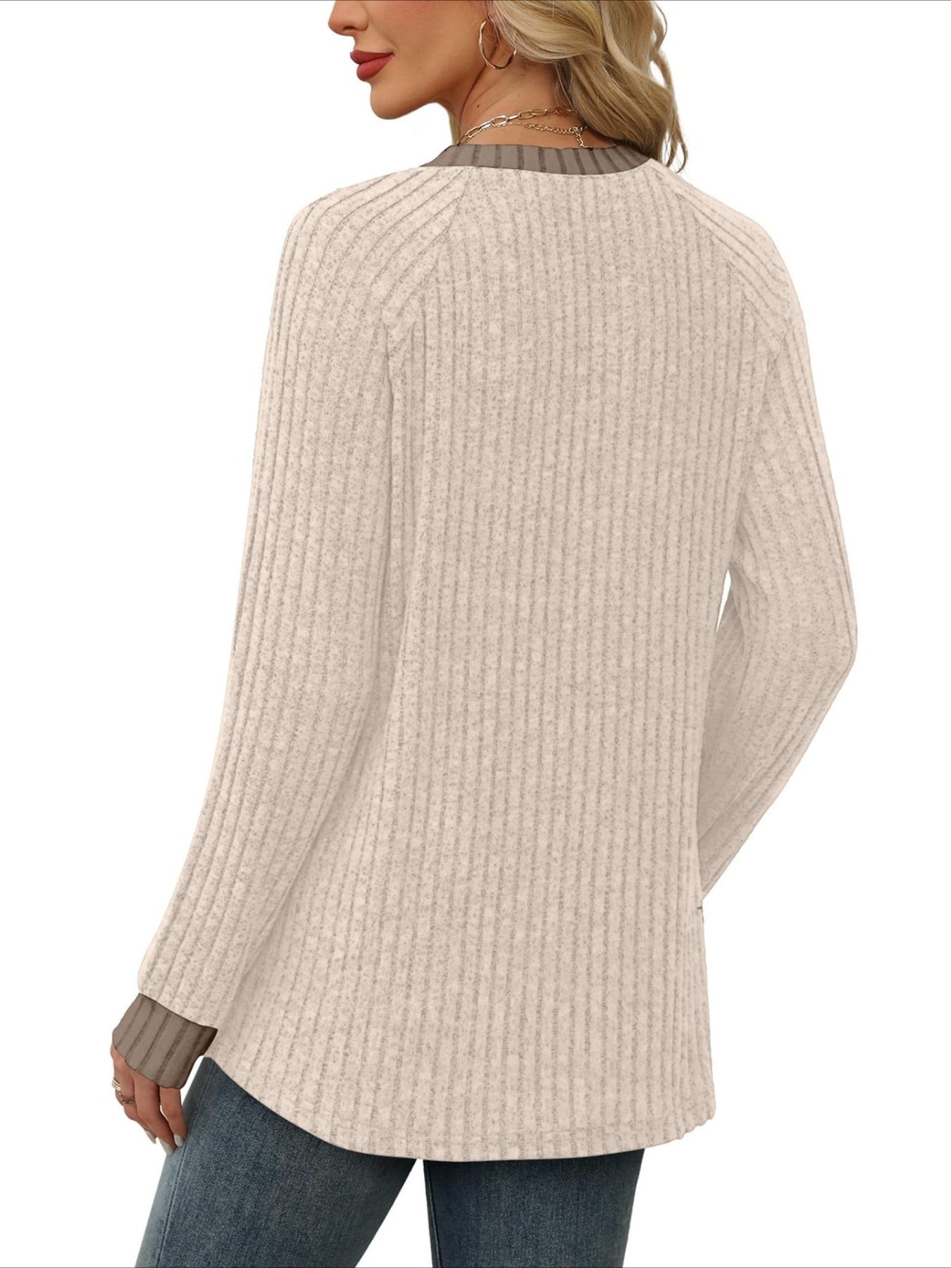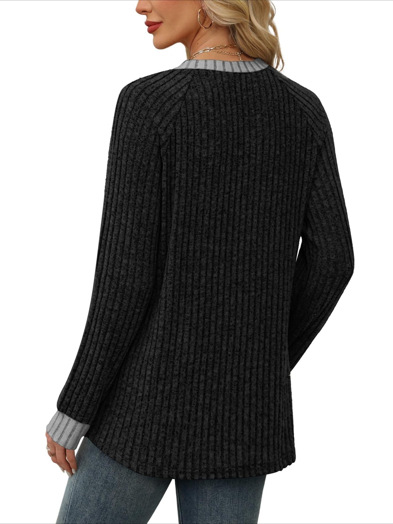 Add a touch of sweetness to your daily wardrobe with our solid V-neck long sleeve...