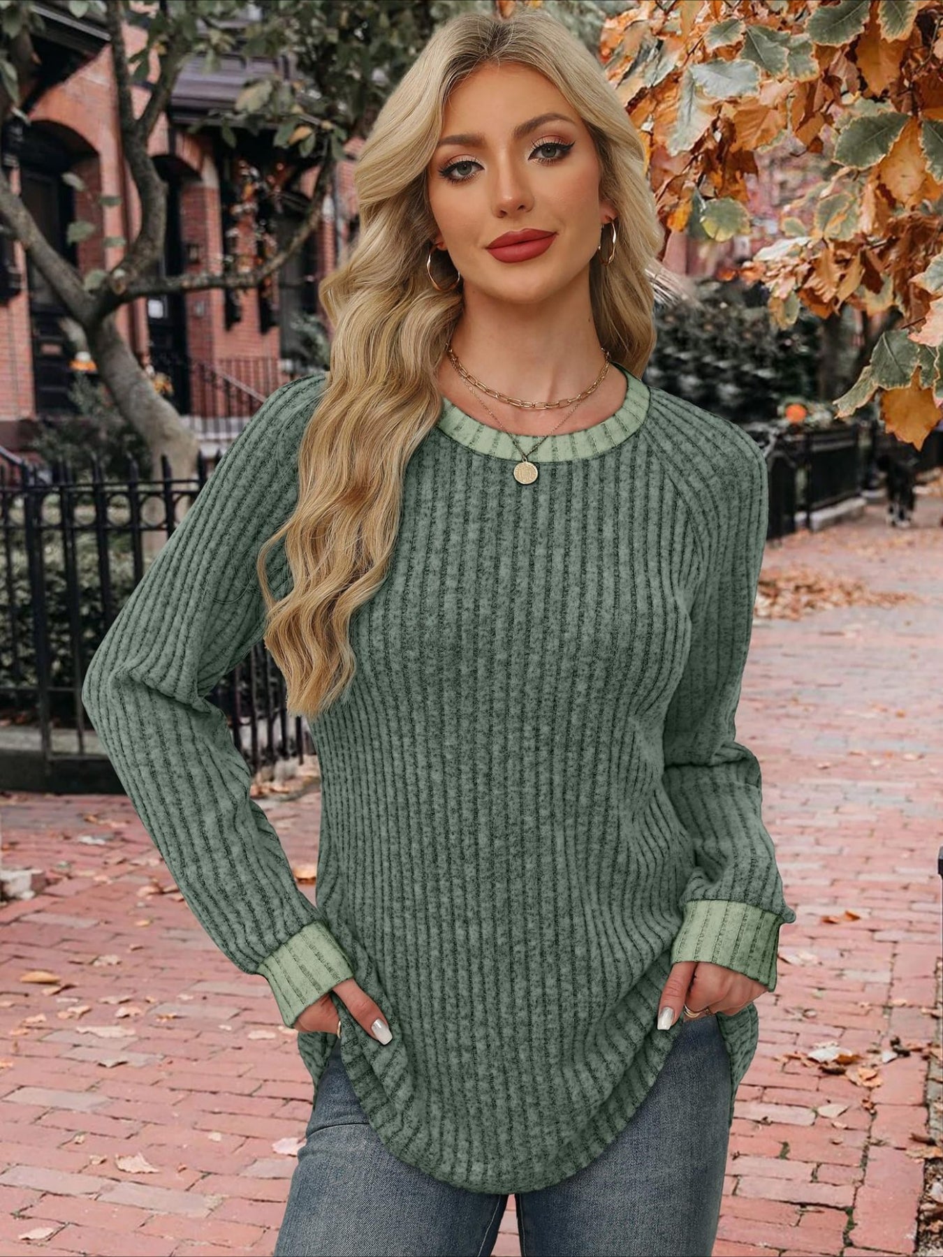 - Neckline: Crew Neck