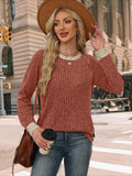 Sale Lace Trim Pleated Solid Color Long Sleeve Button-Up T-Shirt