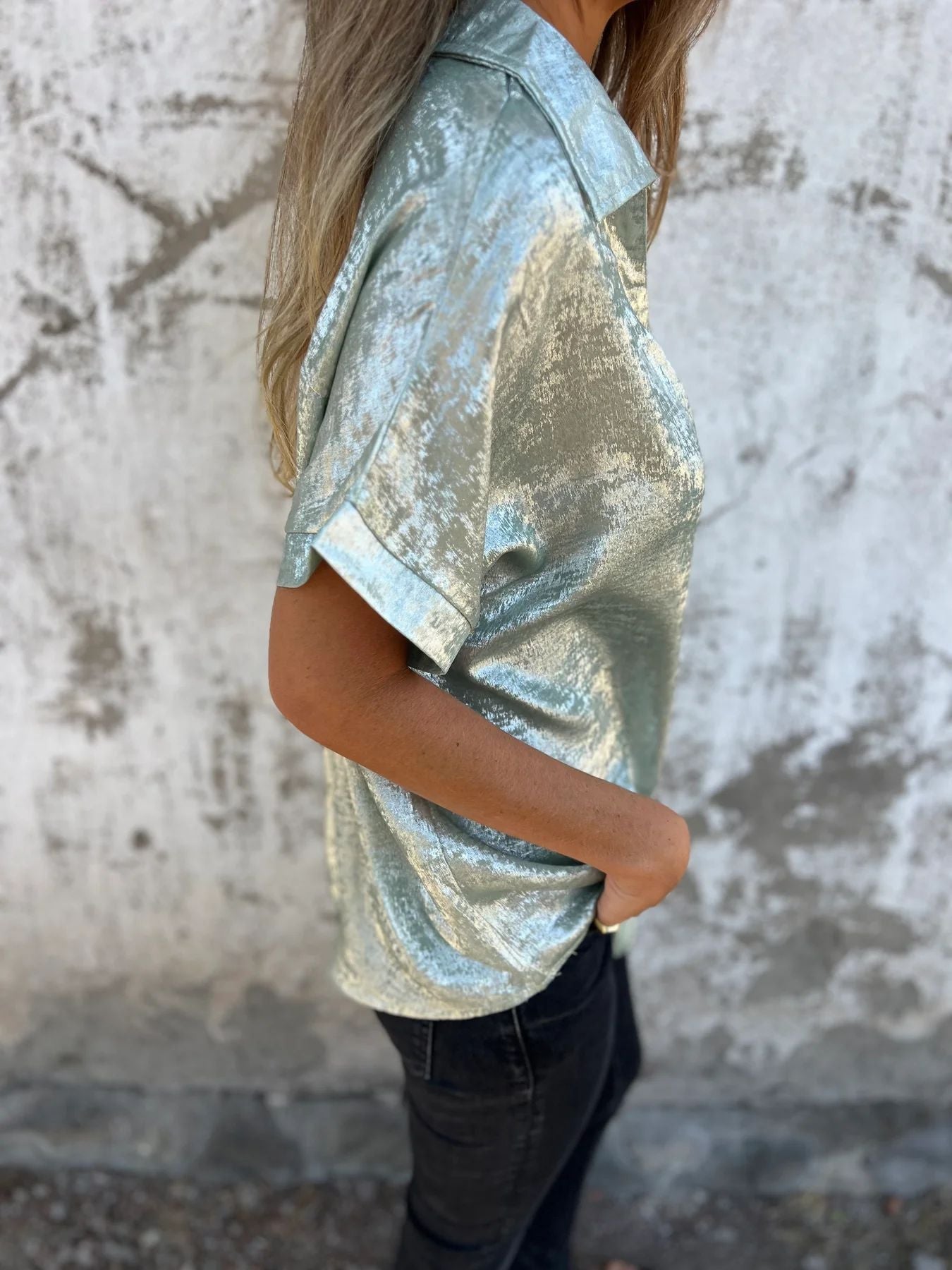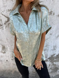 Sale Loose Foiled Short Sleeve Lapel Shirt