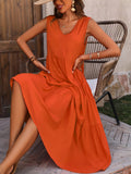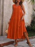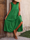 Sale Loose V Neck Ruffle Hem Dress, Casual Sleeveless Dress