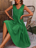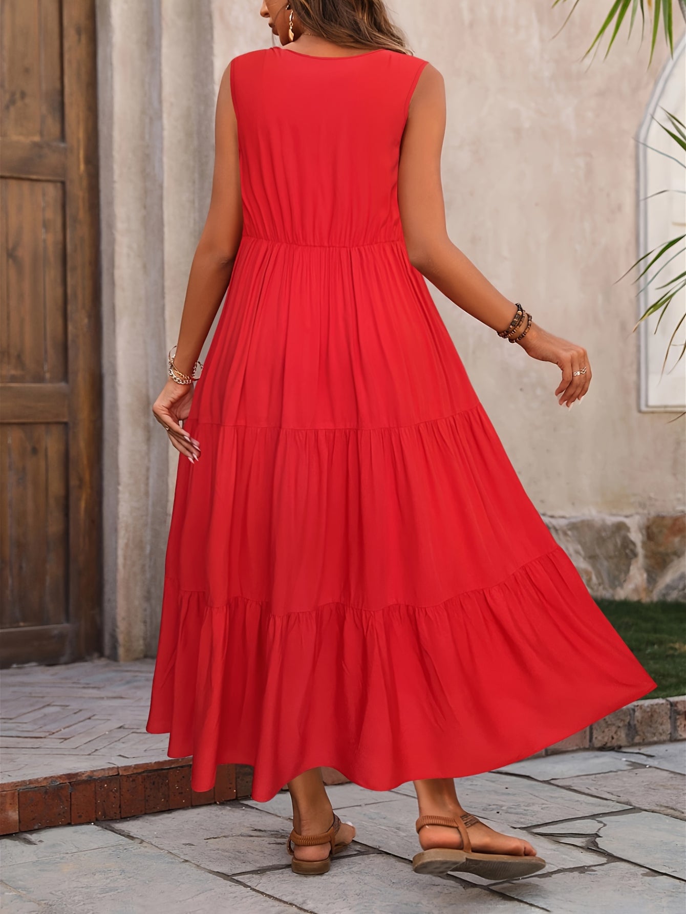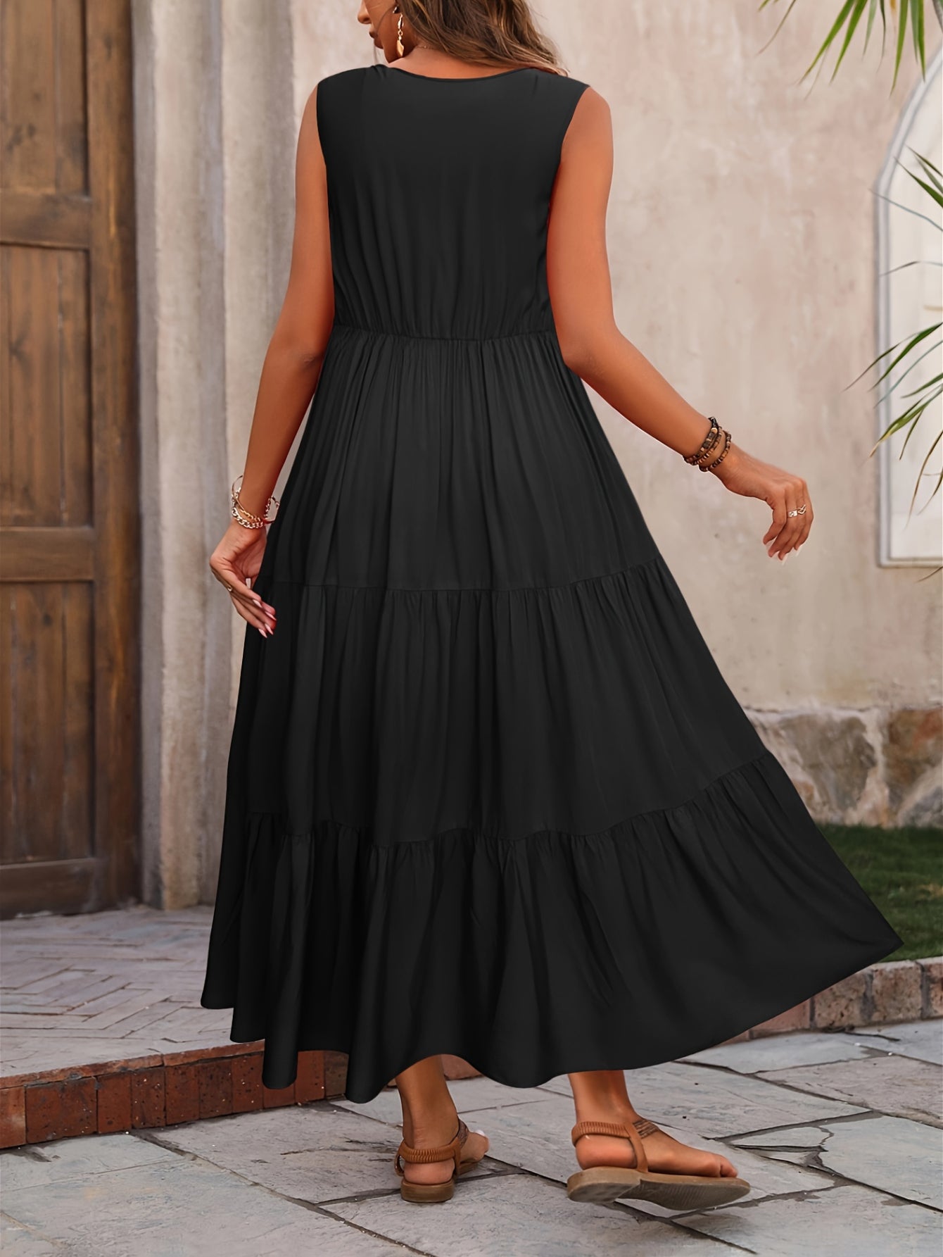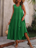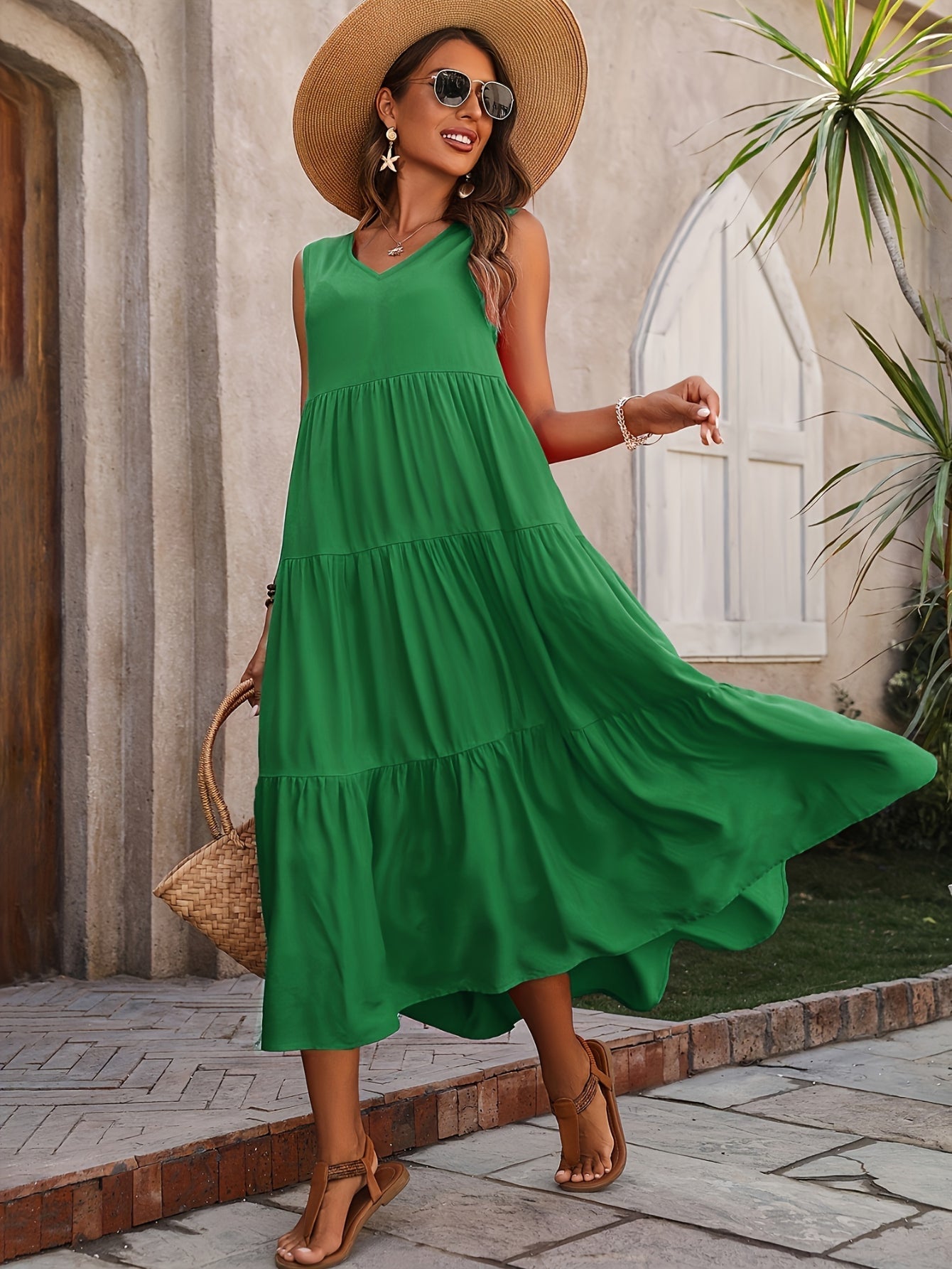 Loose V Neck Ruffle Hem Dress, Casual Sleeveless Dress