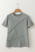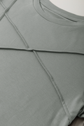 Sale Medium Grey Solid Color Toothpick Stripe Round Neck T Shirt