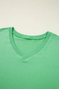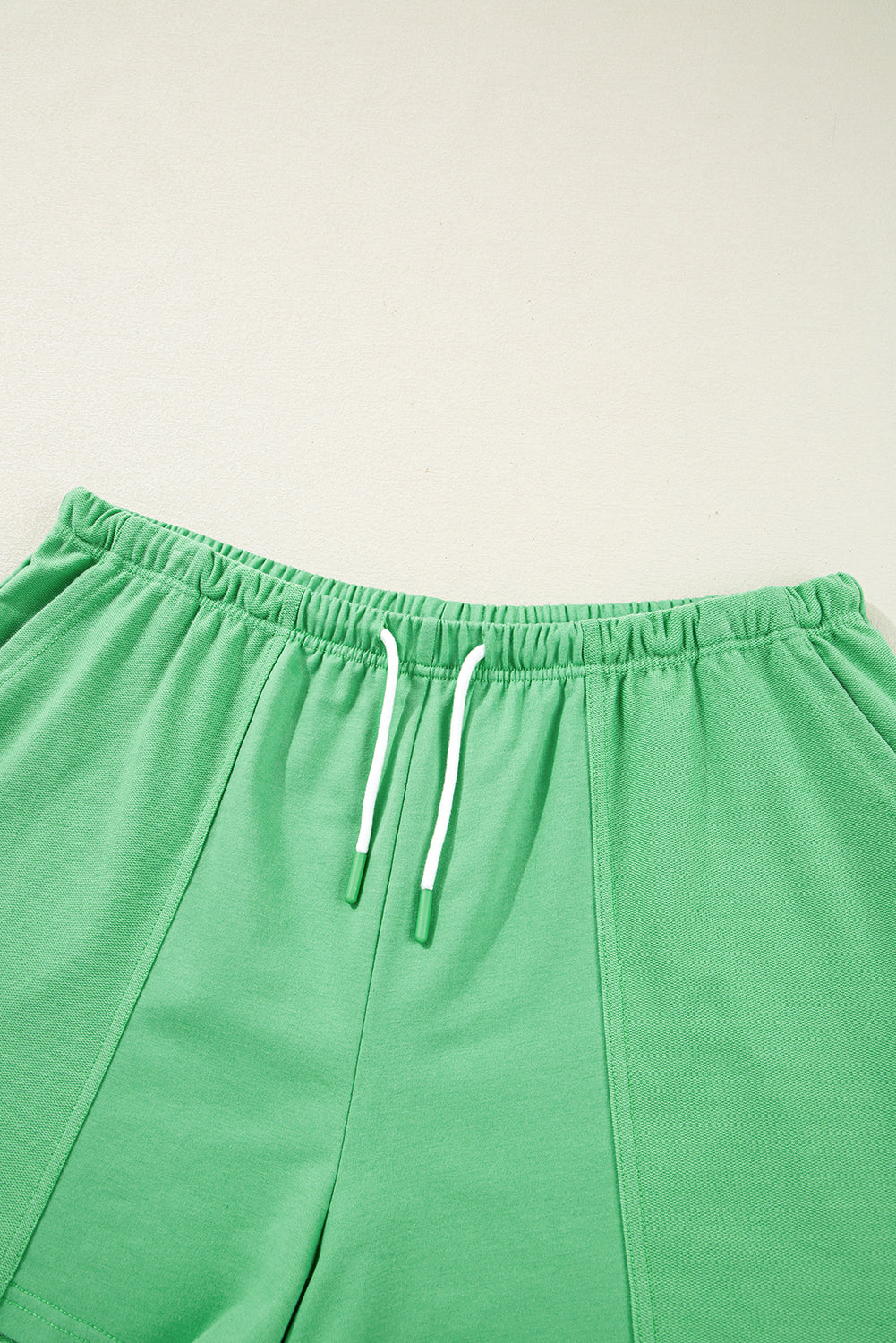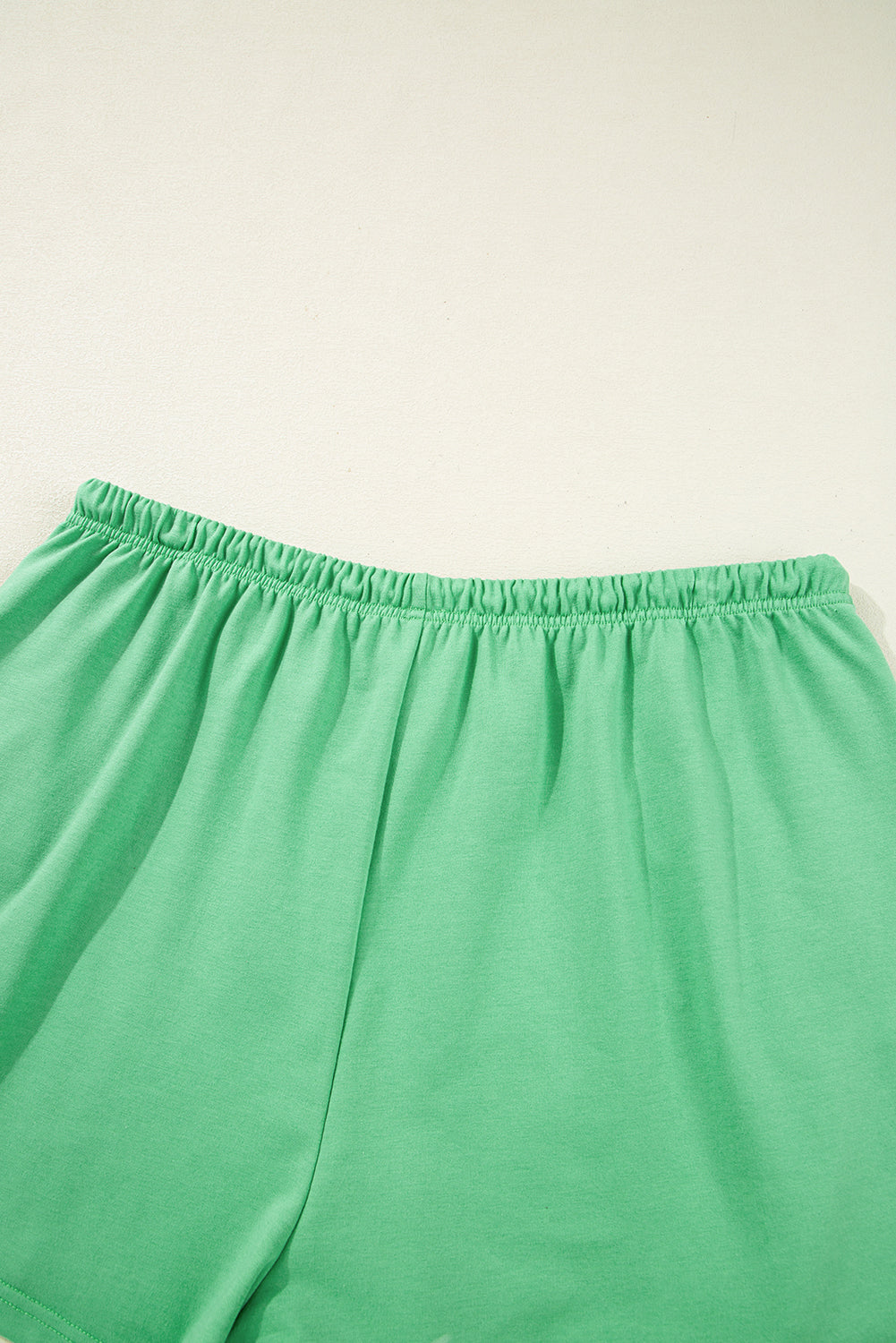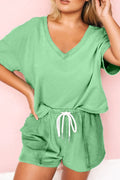 Mint Green Plus Size V Neck Tee Patched Pocket Drawstring Shorts Set