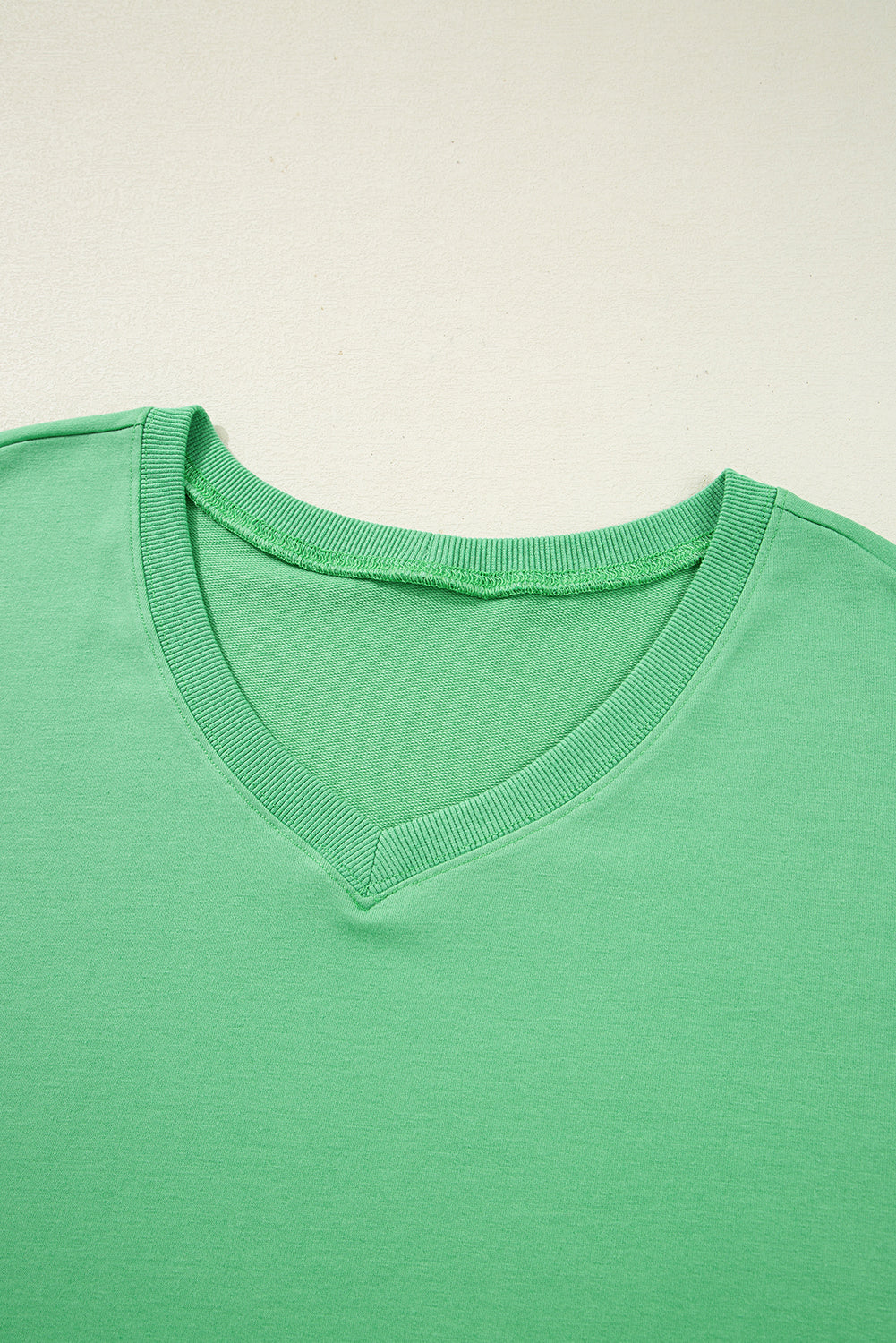 - This green plus set is vibrant and energetic.It includes a v neck tee and casual shorts.This 2pcs short set is very soft, breathable and comfy.The chic style and fine quality make it a hot seller.