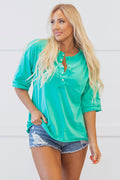 Mint Green Solid Color Half Sleeve Buttons Henley Top