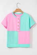 - This T-shirt features a fashionable two-tone color scheme that adds a pop of contrast and visual interest.It includes half-button detailing down the front, offering a unique and functional design.The collared neck provides a polished and structured look, suitable for both casual and semi-formal occasions.Designed with a slim fit, this T-shirt flatters the figure and creates a sleek silhouette.