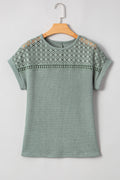 Sale Mist Green Lace Patchwork Waffle Short Sleeve Top