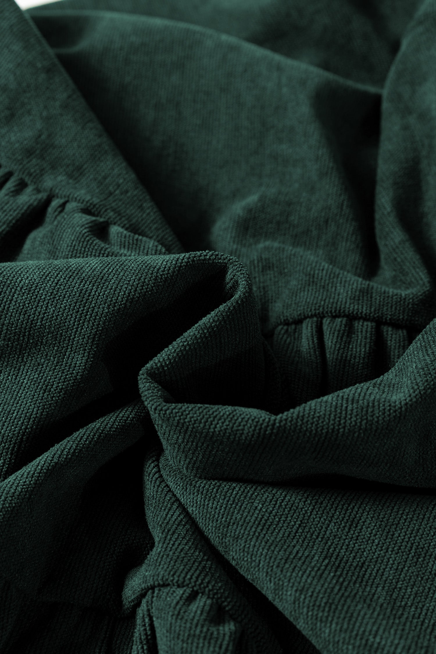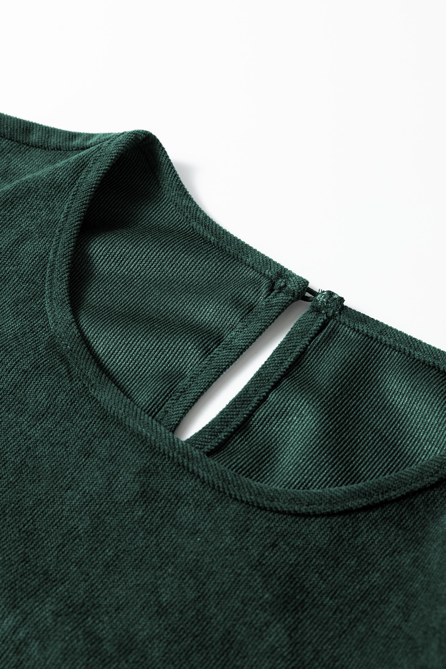 Cinnamon Bracelet Sleeve Split Neck Scallop Detail Pleated Corduroy Mini Dress