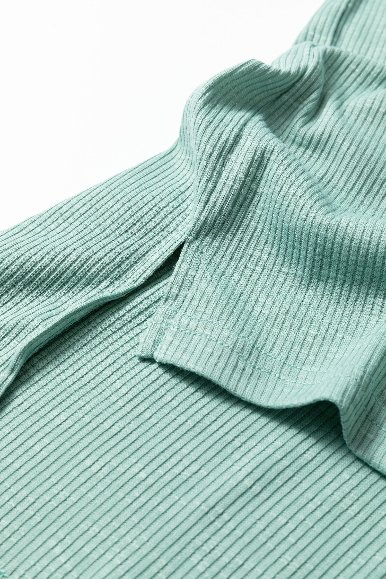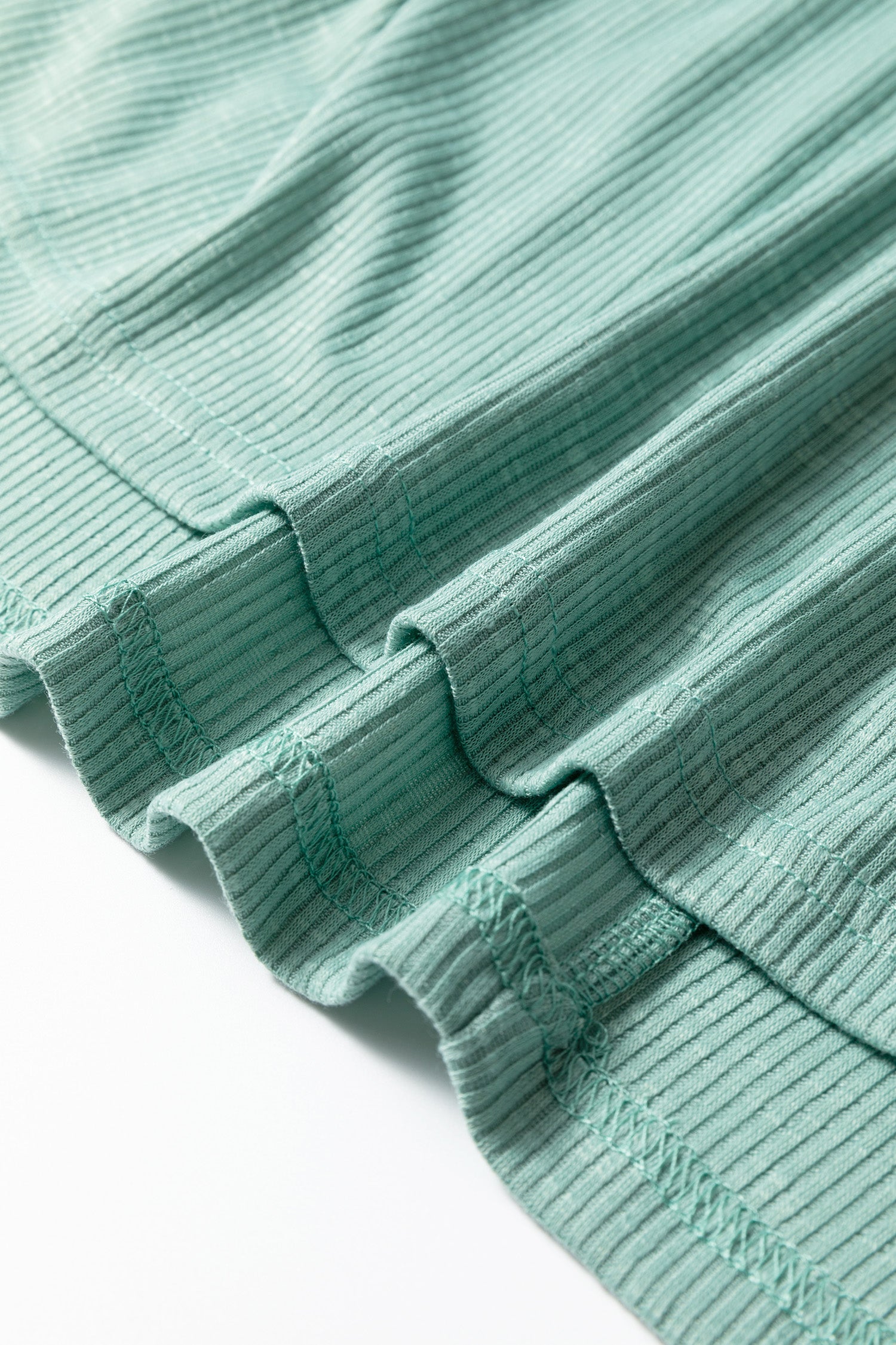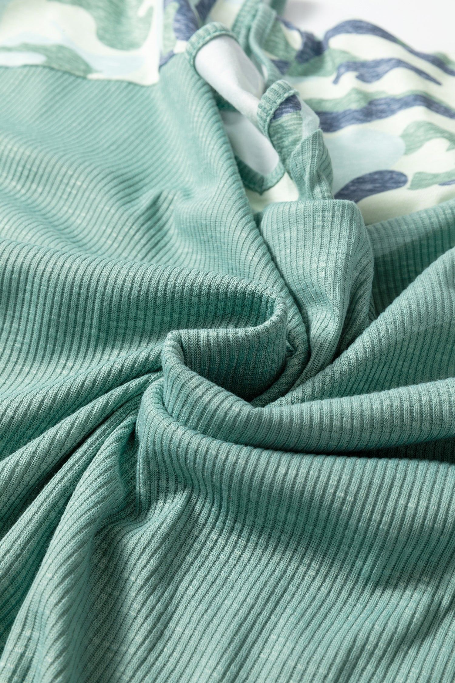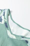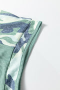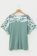 Mist Green Ribbed Camouflage Patchwork Plus Size V Neck Tee