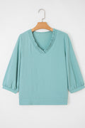Sale Moonlight Jade Frilled V Neckline Bracelet Sleeve Crinkled Blouse