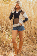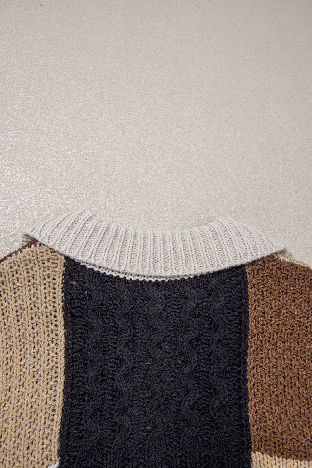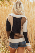 Multicolour Color Block Cable Knit Sleeve Buttons Collared Sweater
