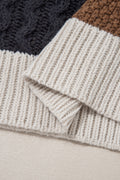 - Color block design adds bold contrast to this cozy knit sweater.Cable knit sleeves offer texture and a stylish seasonal touch.Button accents and collar create a refined, preppy vibe.Soft fabric keeps you warm without sacrificing comfort.