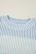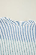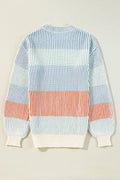 Multicolour Colorblock Textured Knit Bubble Sleeve Sweater