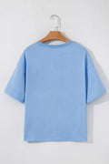Sale Light Grey USA Lettering Patch Notched Neck Loose Tee