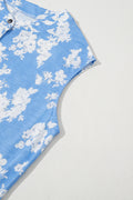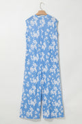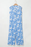 Sale Myosotis Floral Print Half Button Wide Leg Relaxed Sleeveless Jumpsuit