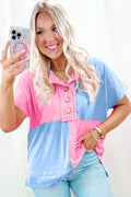 Sale Myosotis Two Tone Half Buttons Collared T Shirt