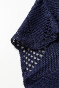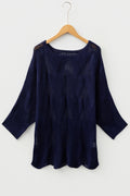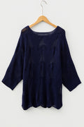 Navy Blue Hollow Out Knit 7/8 Sleeve Casual Sweater