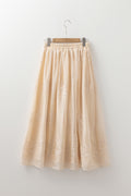 Oatmeal Embroidered Mesh Overlay Flowy Long Skirt