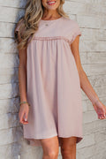 Oatmeal Frilled Trim Crew Neck Loose Fit Mini Dress