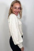 Oatmeal Shirred Cuffs Puff Sleeve Peasant Top