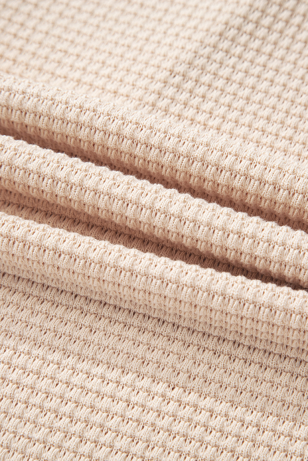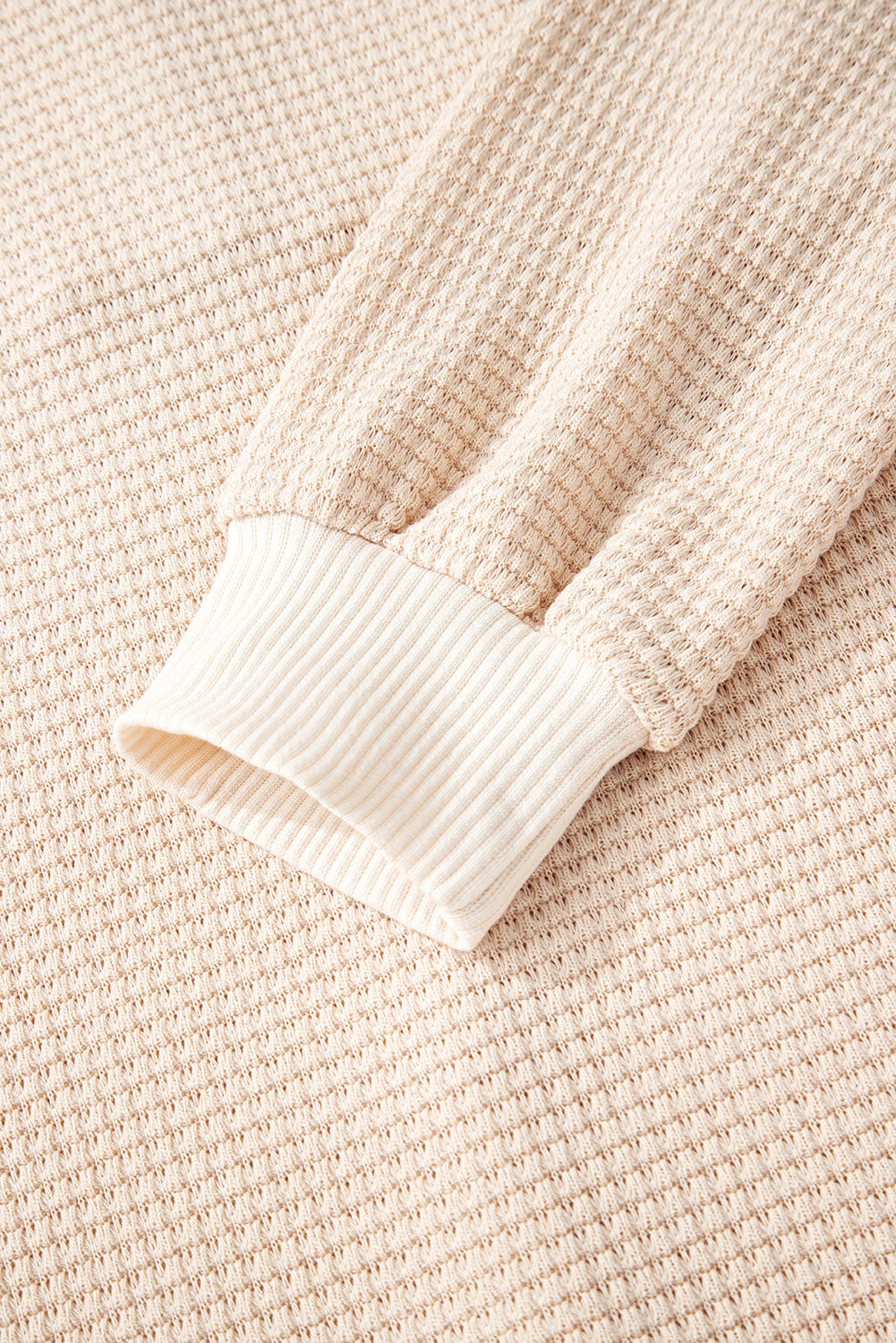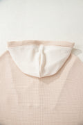 Sale Oatmeal Waffle Patchwork Drop Shoulder Hooded Long Sleeve Top
