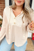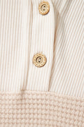 Oatmeal Waffle Patchwork Drop Shoulder Hooded Long Sleeve Top