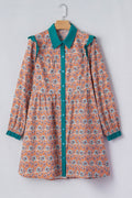 Orange Boho Floral Contrast Collared Shirt Mini Dress