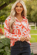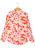 Orange Botanical Print Single Chest Pocket Button Up Shirt