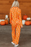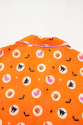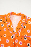 Orange Halloween Print Lapel Shirt Long 2pcs Pajama Set