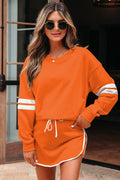 Orange Varsity Stripe Detail Drop Shoulder Pullover Mini Skirt Set