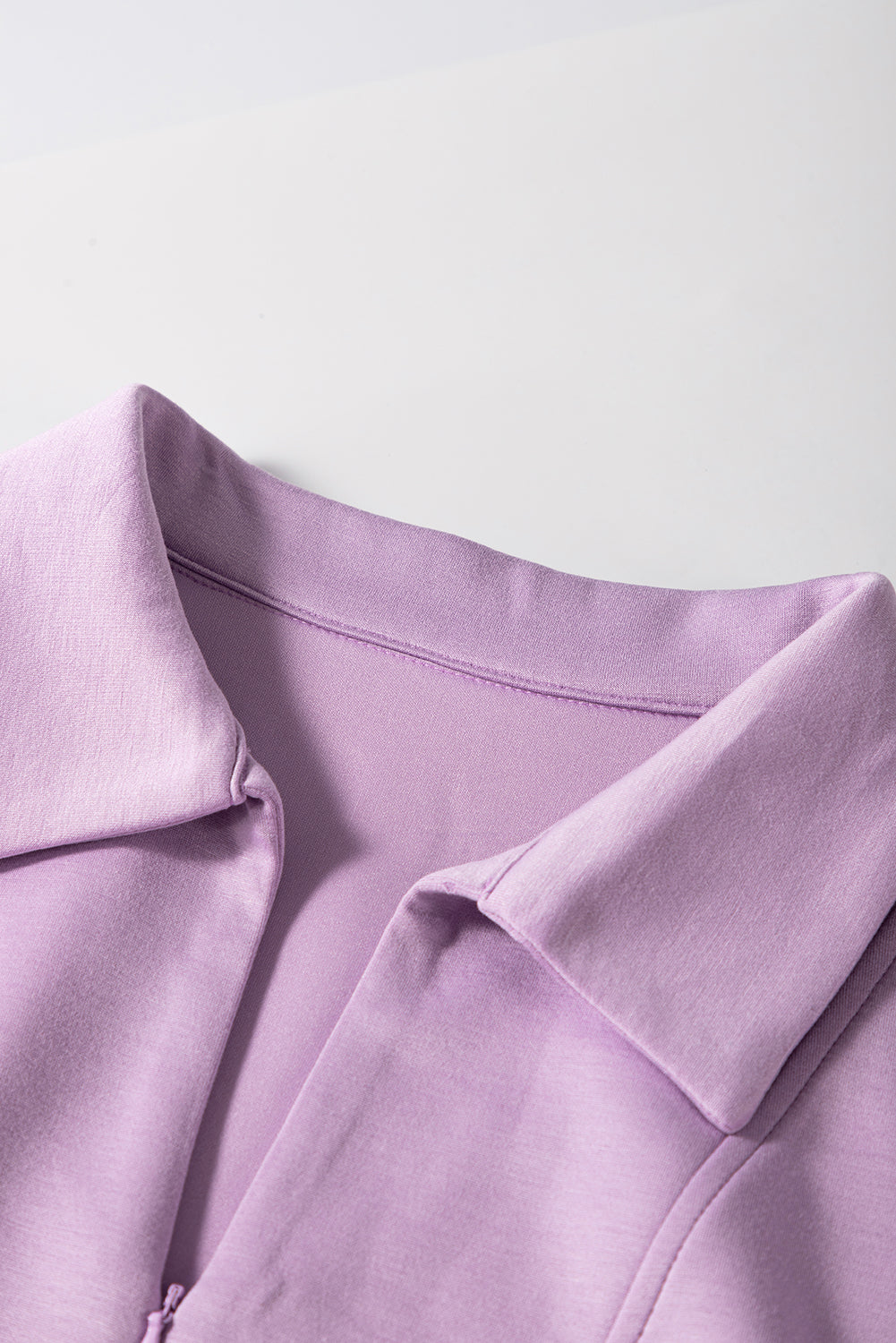 Sale Orchid Bouquet Short Sleeve Zipper Collared Elastic High Waist Romper
