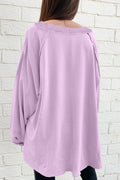 Orchid Petal Solid Color Raw Seam Patchwork Baggy Sweatshirt