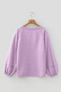 Orchid Mist Solid Color Raw Seam Patchwork Ribbed Drop Shoulder Sweatshirt