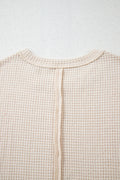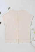Pale Khaki Solid Color Textured Seamed Short Sleeve Top