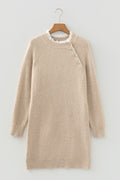 Parchment Button Lace Detail Raglan Sleeve Shift Mini Sweater Dress