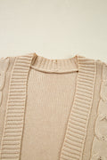 Parchment Cable Knit Braided Tie Sleeve Plus Size Open Cardigan