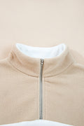 Parchment Fleece Colorblock Patchwork Zipped Neck Pullover Sweatshirt