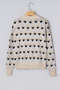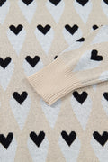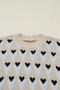 Parchment Geometric Heart Print Ribbed Trim Loose Sweater