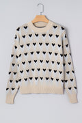 - The geometric heart print sweater adds a cute, bold touch to everyday looks.Loose sweater offers a relaxed comfort for casual all-day wear.Ribbed trim design provides structure with a cozy feel.Soft knit fabric makes this women’s knit sweater warm and breathable.