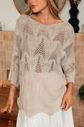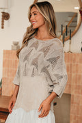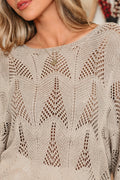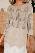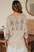 Parchment Hollow Out Knit 7/8 Sleeve Casual Sweater