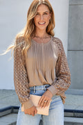Parchment Lace Patchwork Long Raglan Sleeve Pleated Top