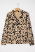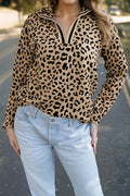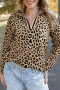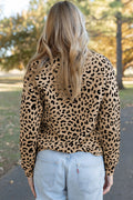Parchment Leopard Polo Collar V Neck Pullover Top