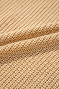 Apricot Solid Textured Drawstring Henley Hoodie