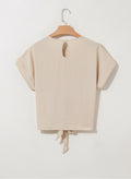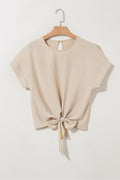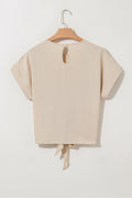 Parchment Solid Color Knotted Hem Short Sleeve Blouse