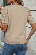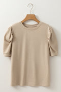 Parchment Solid Color Ruched Puff Sleeve T Shirt