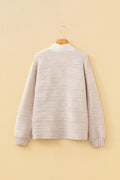 Parchment Solid Color Textured Zip V Neck Pullover Sweatshirt