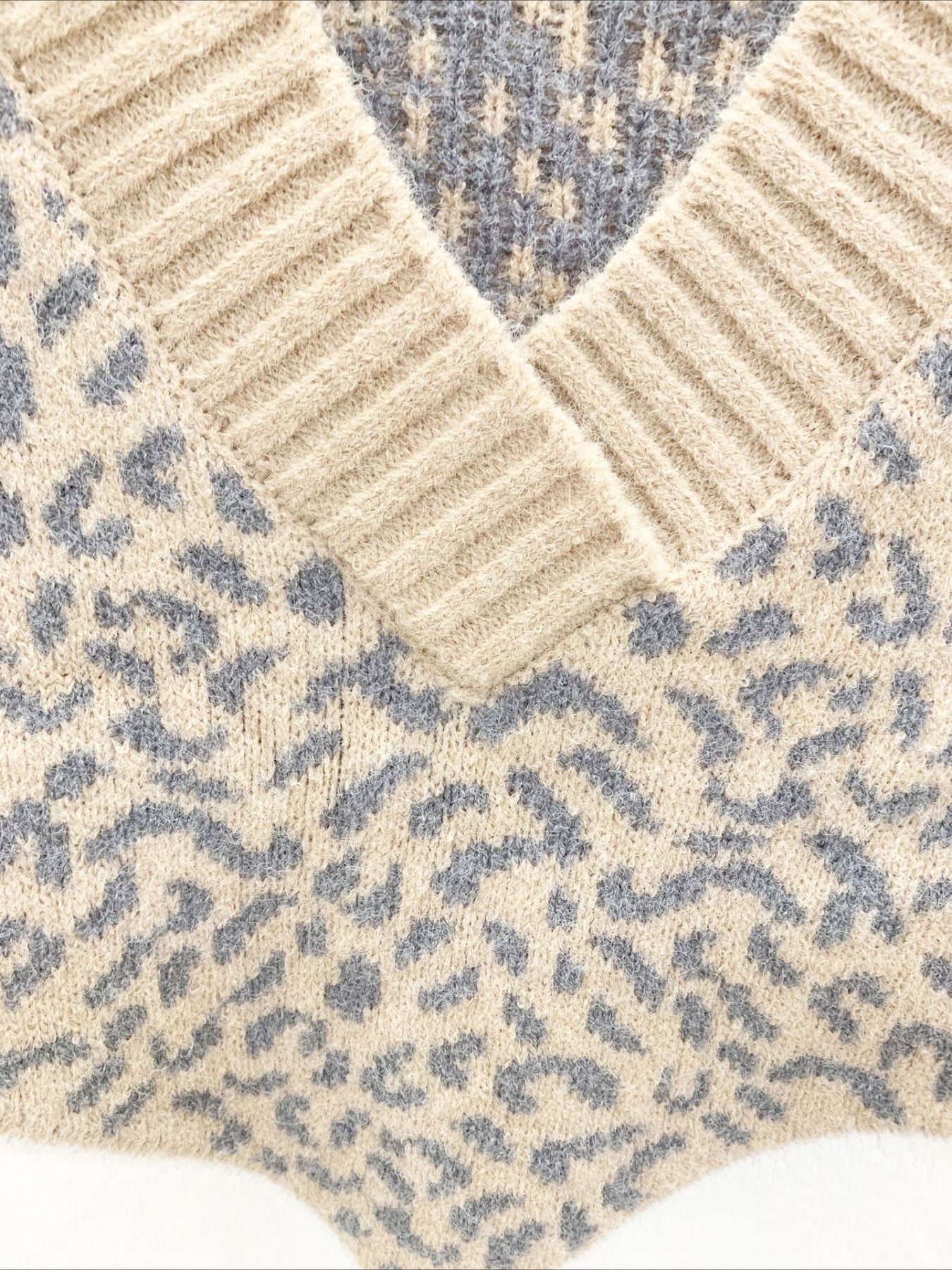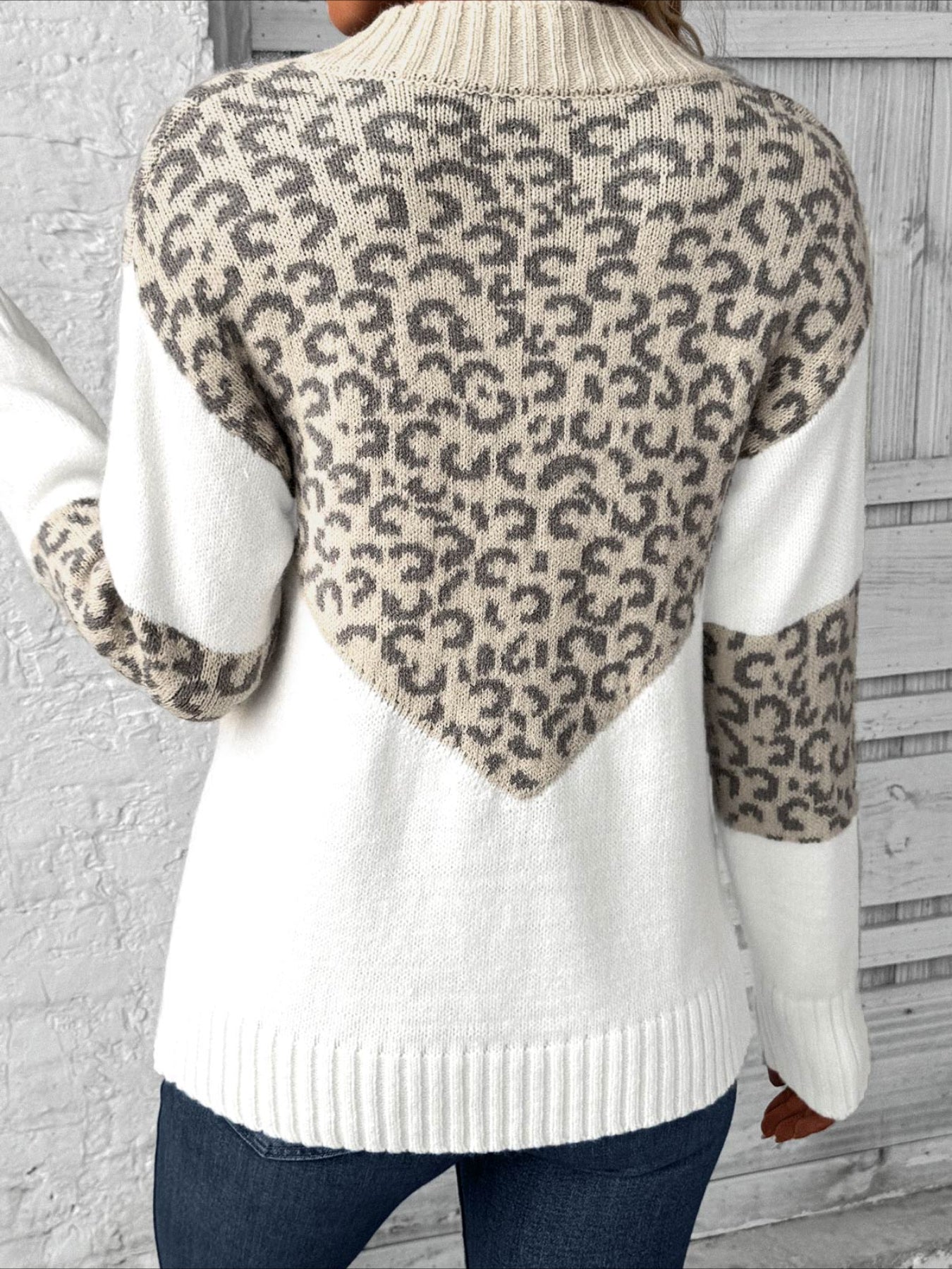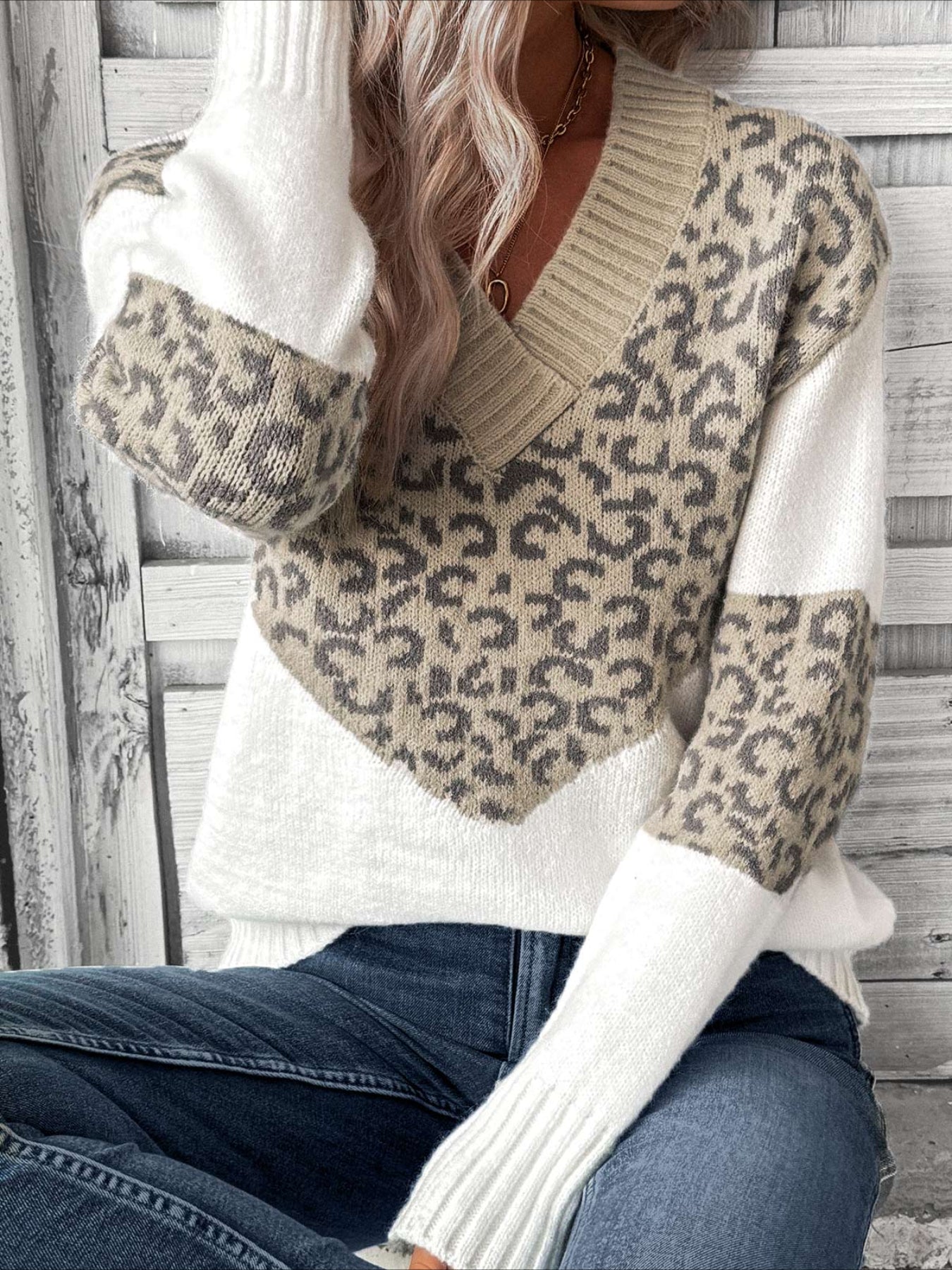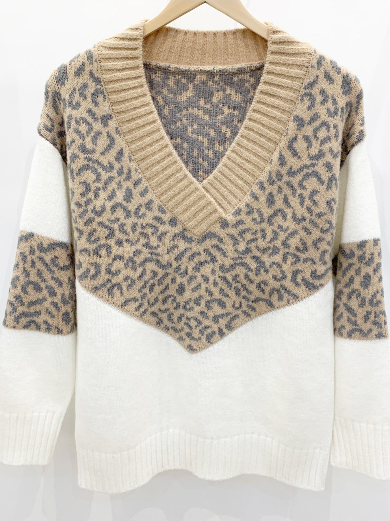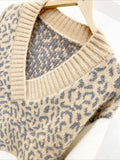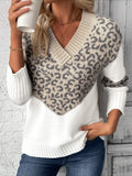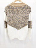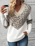 Patchwork Leopard Long Sleeve V Neck Sweater