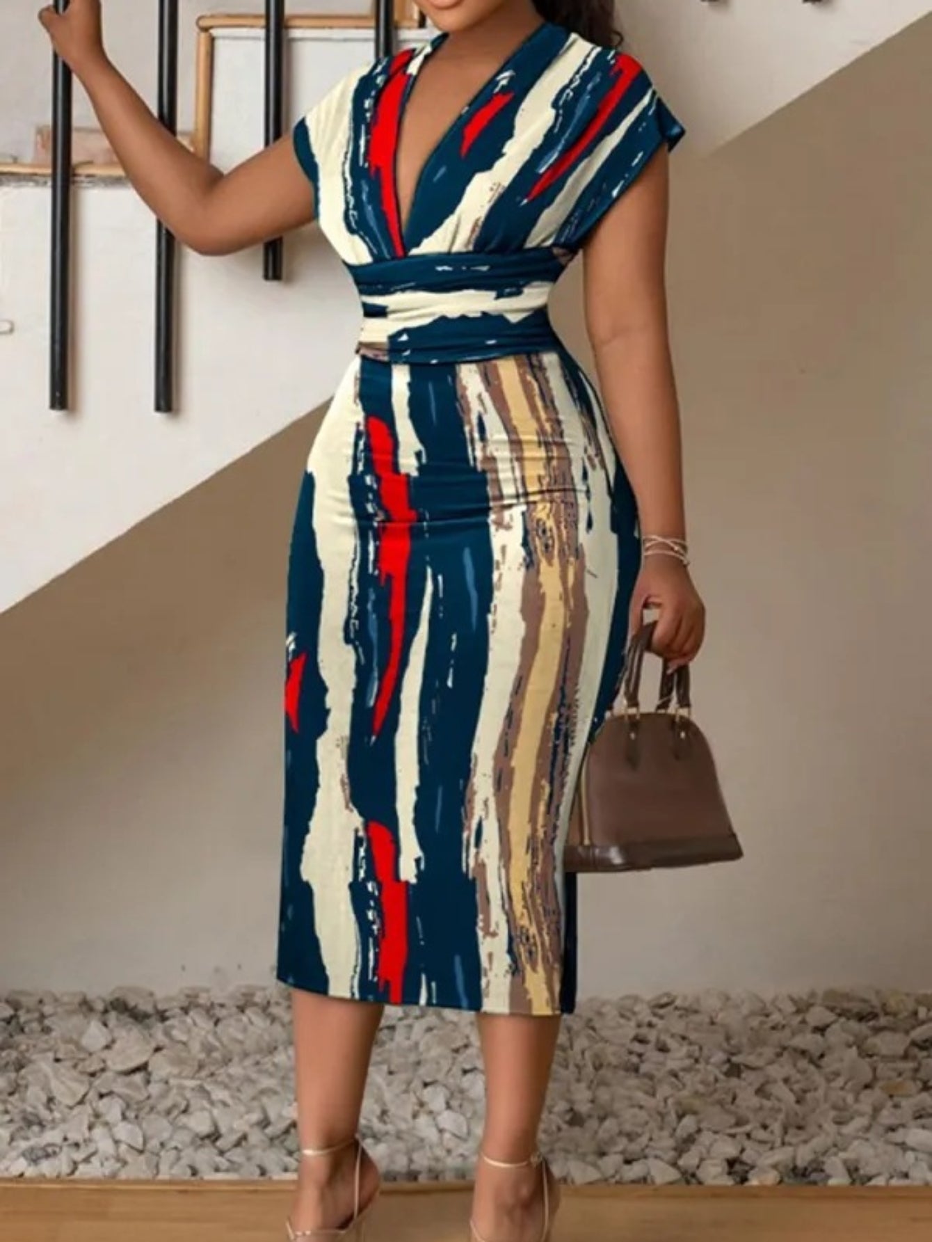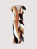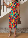 Sale V Neck Short Sleeves Print Casual Midi Dress